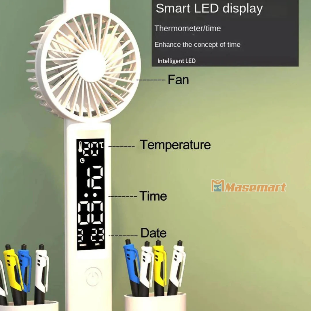 LED Table Reading Light, Fan, Pen Container, Mobile Phone Holder, Thermometer